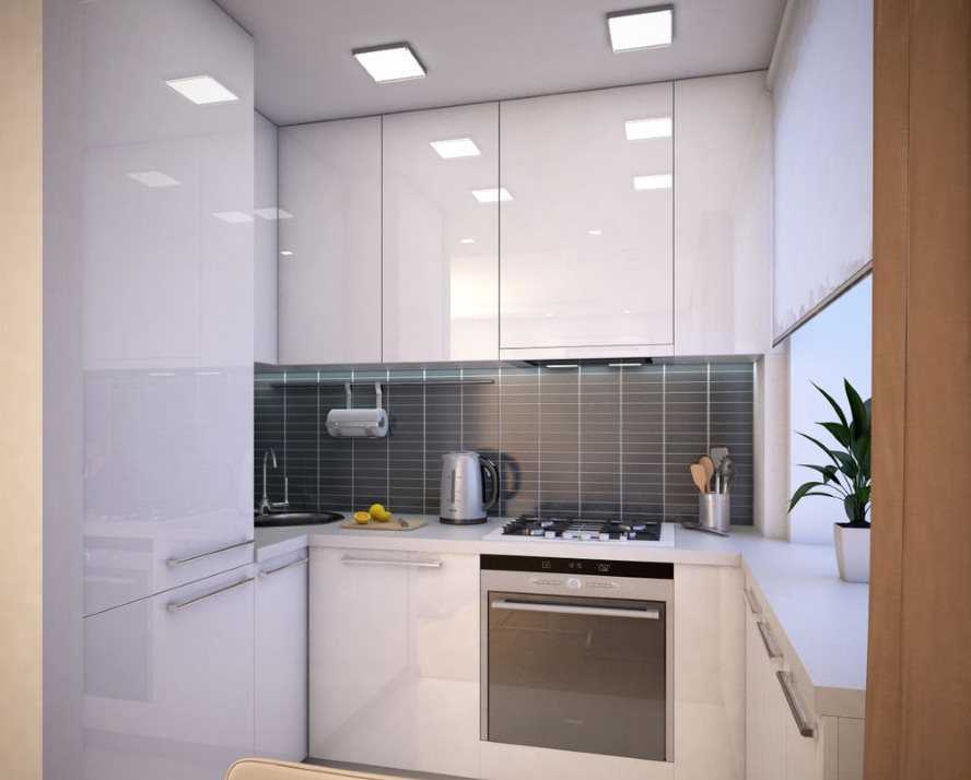 Гарнитур в маленькой кухне обязательно должен быть аккуратным, с закрытыми полками, без заметных рельефов.