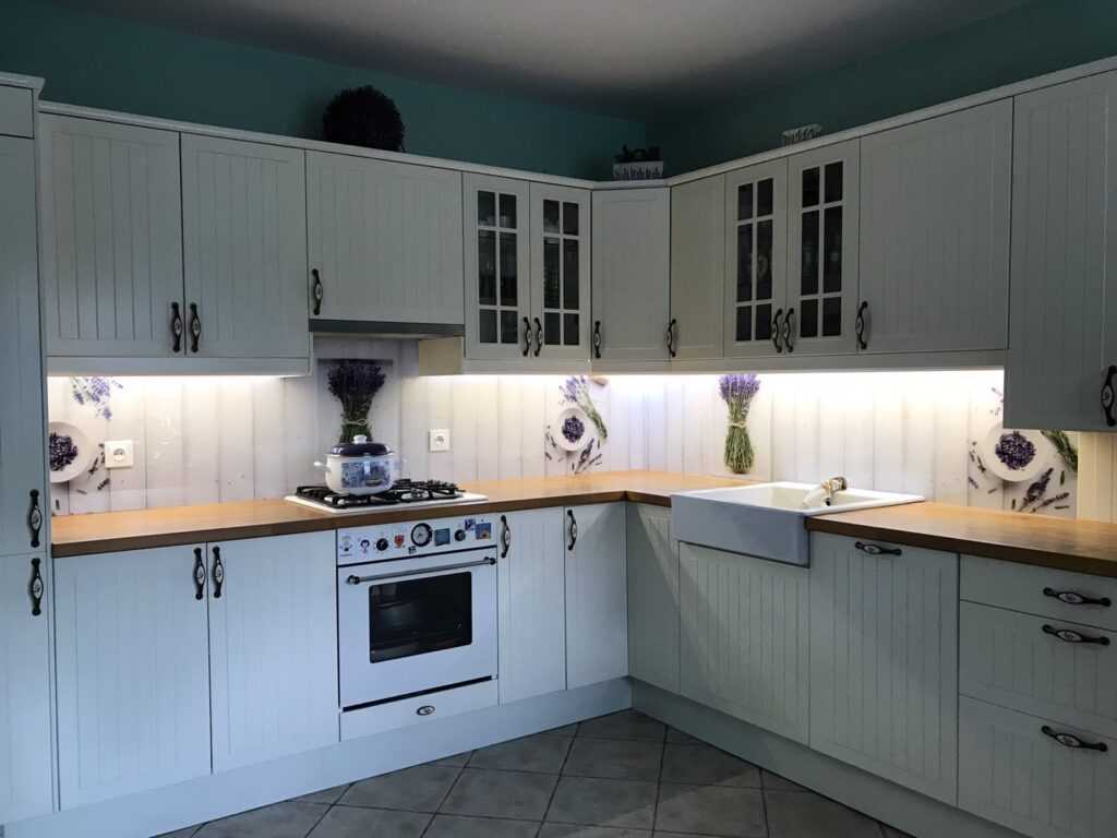 Рабочая поверхность — во многих современных гарнитурах уже можно установить галогенные или флуоресцентные лампы, которые отлично справляются с освещением столешницы и раковины. Когда нет отверстий, вы можете вручную сделать их в нижней части шкафов, установить плоские люминесцентные лампы или прикрепить светодиодную ленту. Если вы планируете установить стеклянный экран на кухонный фартук, вы также можете установить подсветку в нескольких режимах работы.