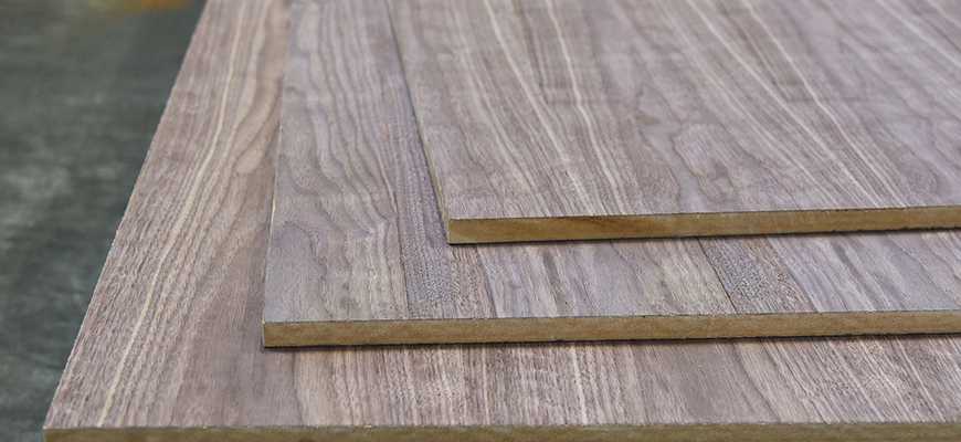 Тонкий срез древесины (обычно элитных сортов) прикрепляют к плите: