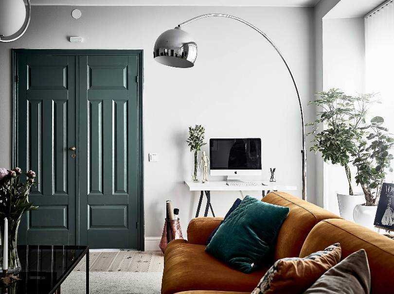 Использование популярных классических белых дверей уместно в скандинавском интерьере. Присутствие белой двери здесь – обязательное условие!