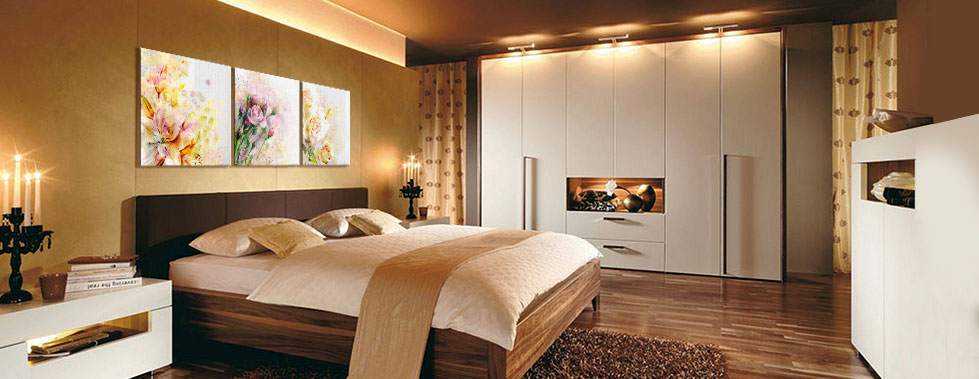 Для спальни рекомендуется подбирать изделия, выполненные в легких, нежных тонах, с романтическими сюжетами. Идеально подойдут пастельные оттенки и цветочные композиции. Лучшее место для расположения модульной картины ― изголовье кровати.