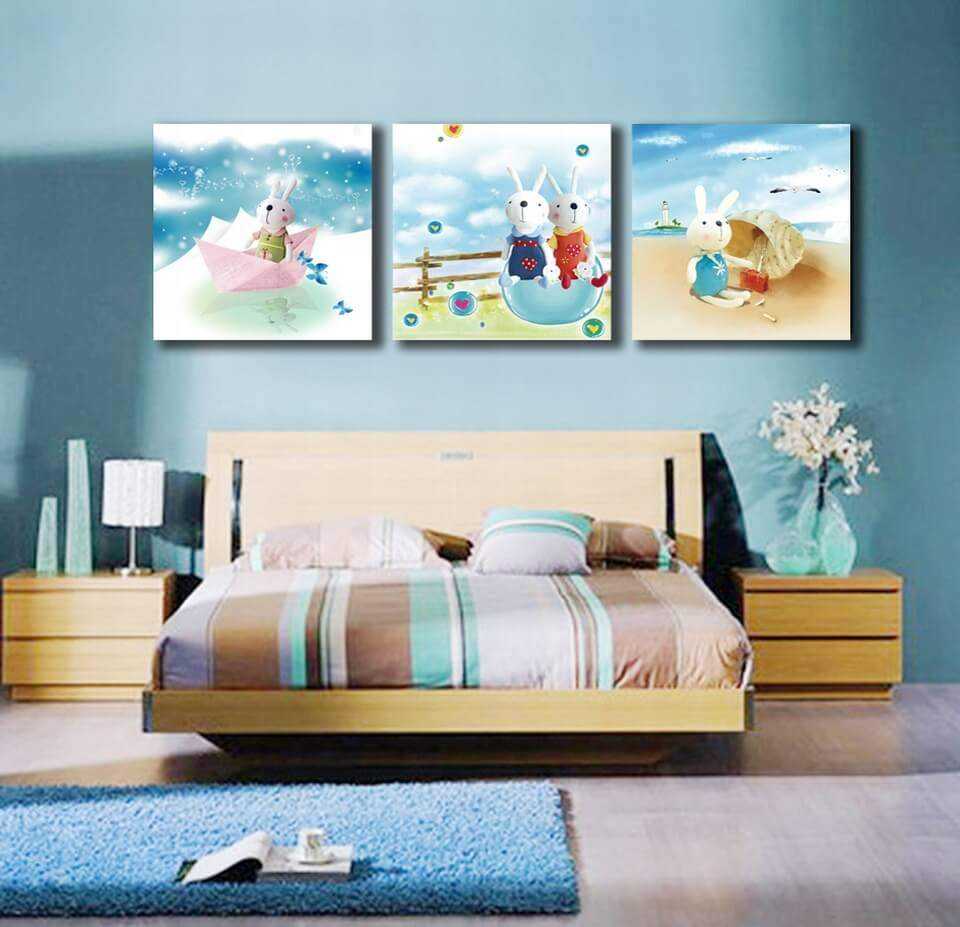 Выбор сюжета и стиля модульной картины в детскую комнату, прежде всего, зависит от возраста и пола ее обитателей. Малыши наверняка оценят изображения персонажей добрых мультфильмов.