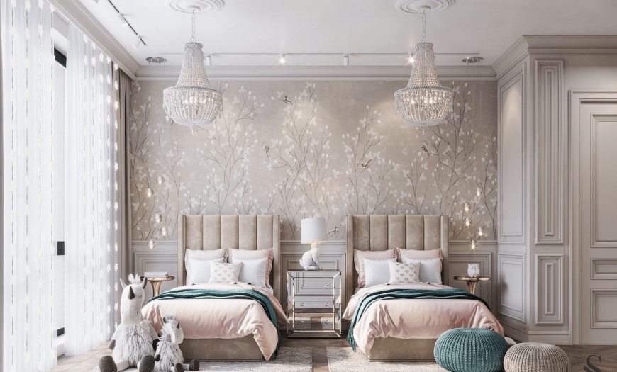 Не важно, какой стиль оформления выбирают родители, обои в спальню дочери должны соответствовать одной идее. Напоминаем, что горизонтальные полосы расширяют пространство, вертикальные – поднимают в высоту