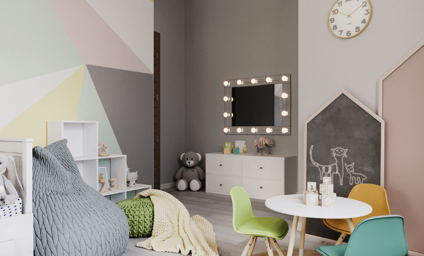 Существует масса крутых пастельных тонов для спальни ребенка – фисташковый, светло-желтый, бирюзовый, светло-розовый.