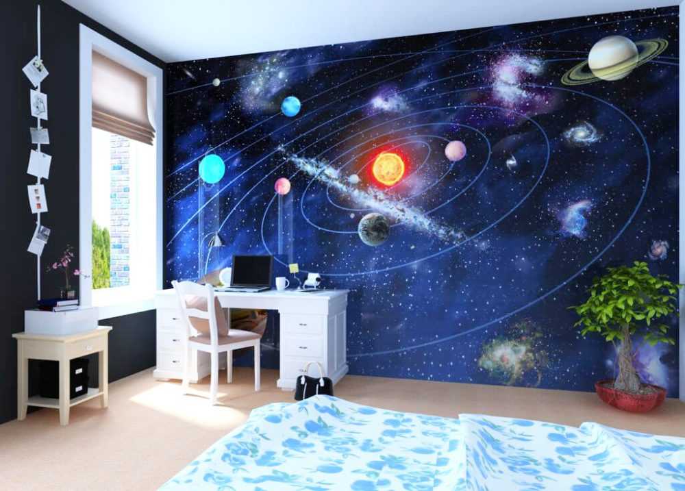 Покрыв одну из стен 3D-материалами, можно получить эффект ее отсутствия. Так из комнаты вы перемещаетесь в лес, на море или в другой город.