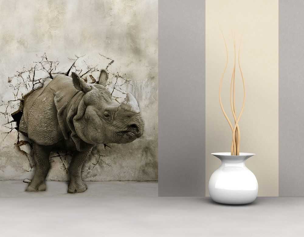 А вот, как интересно смотрятся необычные обои, которые создают эффект подвижности, огибая рисунком предметы. Для создания необычного эффекта можно также использовать роспись стен и различные постеры или панно.