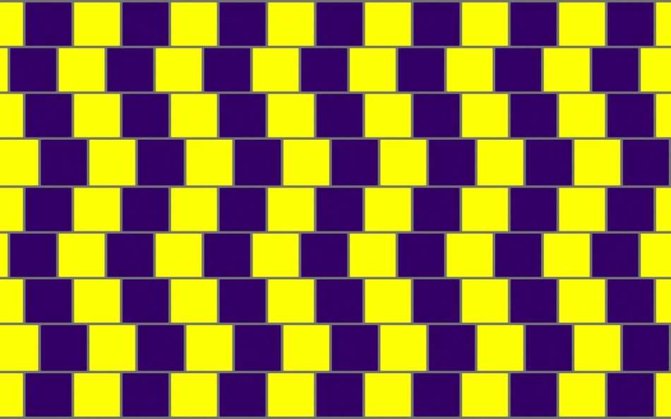 Эту иллюзию можно отнести к двум видам «искривление формы» и «движущаяся иллюзия». Во-первых не равномерное размещение кубиков позволяет сделать вывод, что линии кривые.