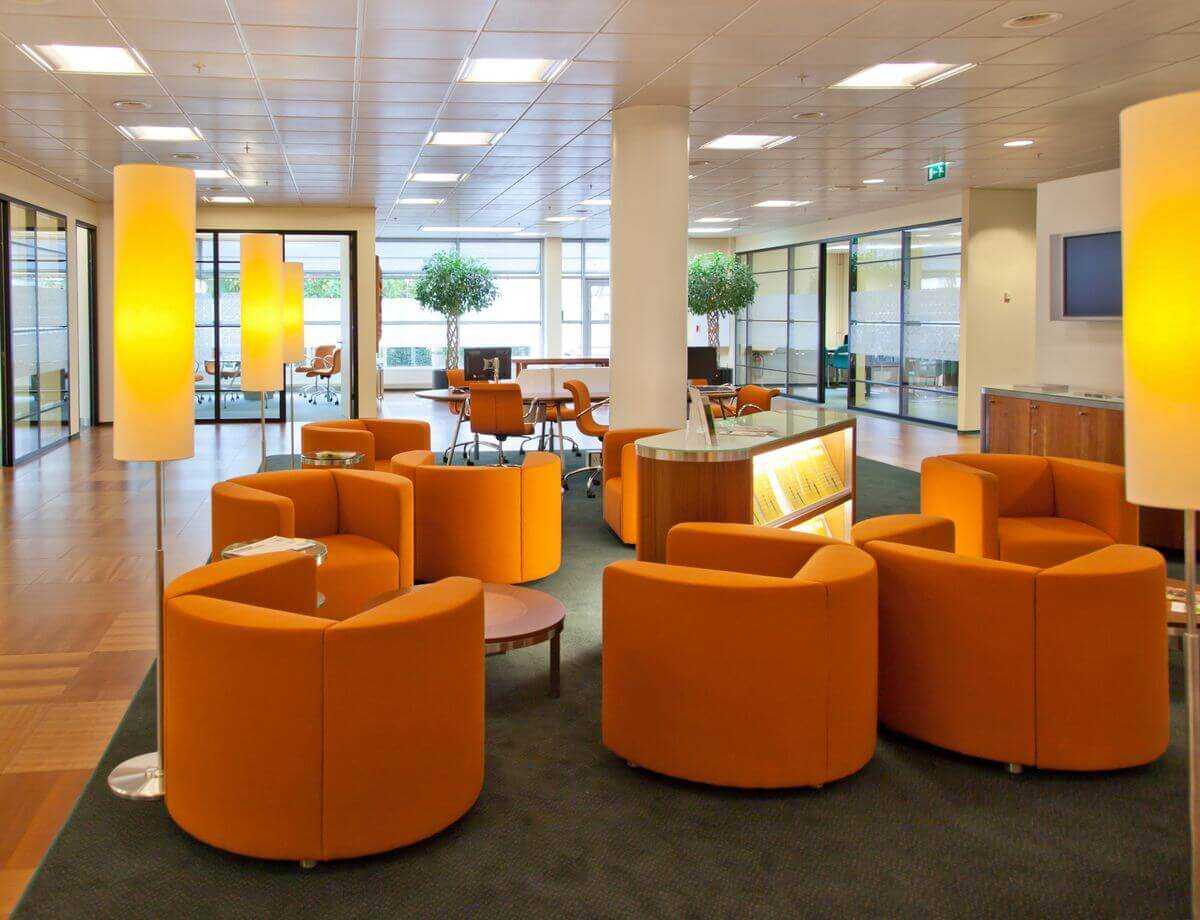 - продумайте не только рабочие места, но и другие важные зоны — лаунж, ресепшн, переговорные, кухню.