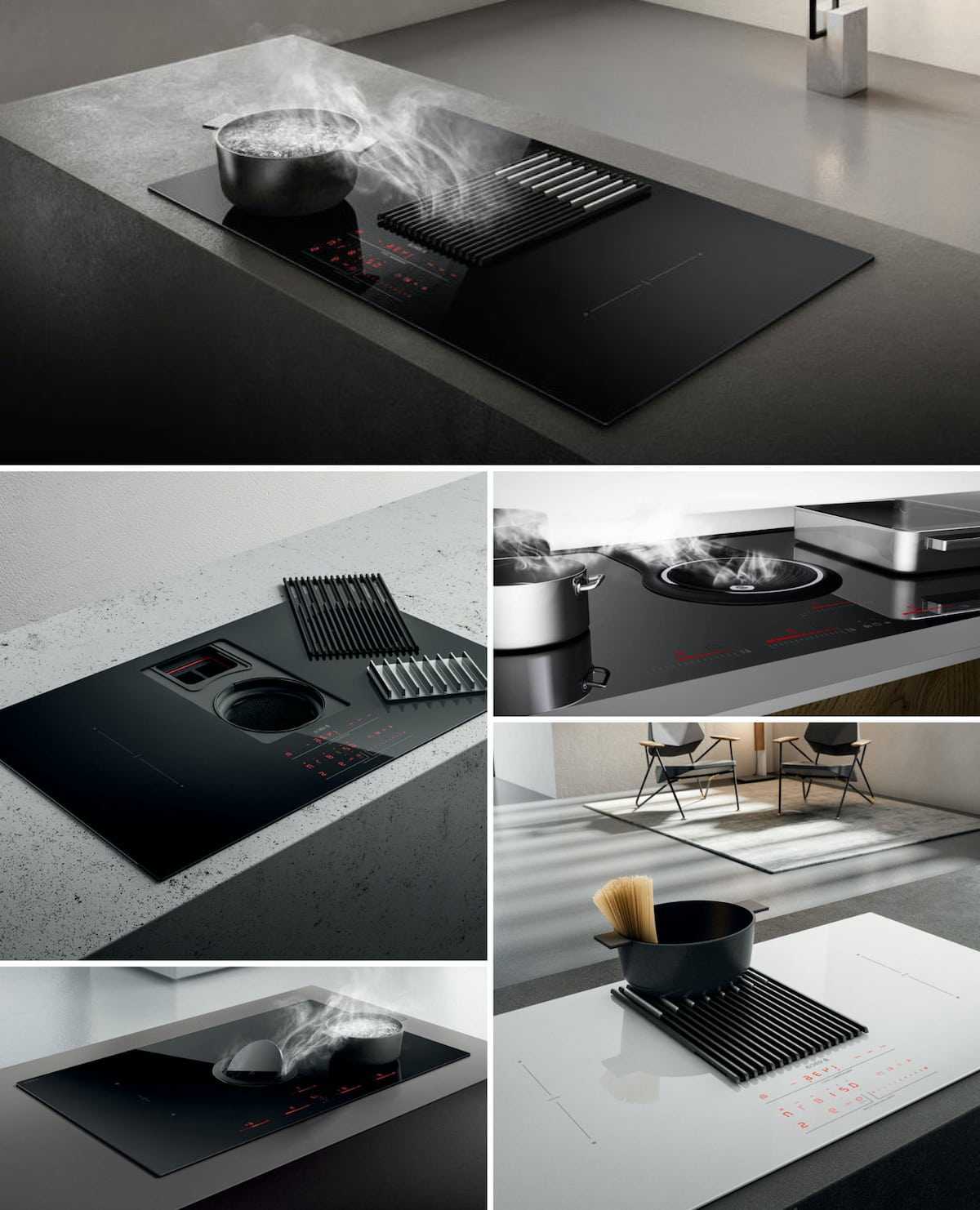 - Варочная панель с вытяжкой. Некоторые производители, желая облегчить ваш выбор, предлагают готовые комплекты, в которых они визуально сочетают вытяжку с варочной панелью. Преимущество такого решения — возможность функционального комбинации устройств. Например, вытяжка может включиться, как только вы начнете пользоваться варочной панелью.