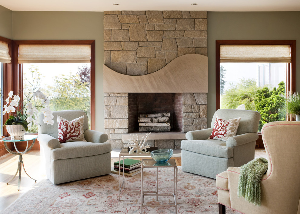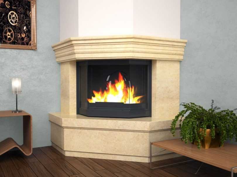 Облицовка каминов также выполняется известняком, песчаником и туфом, которые быстро прогревается и хорошо держат тепло