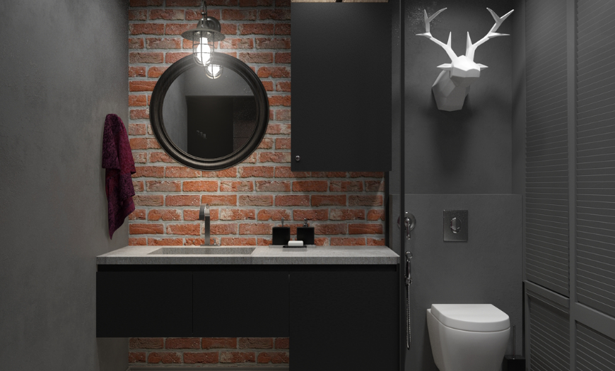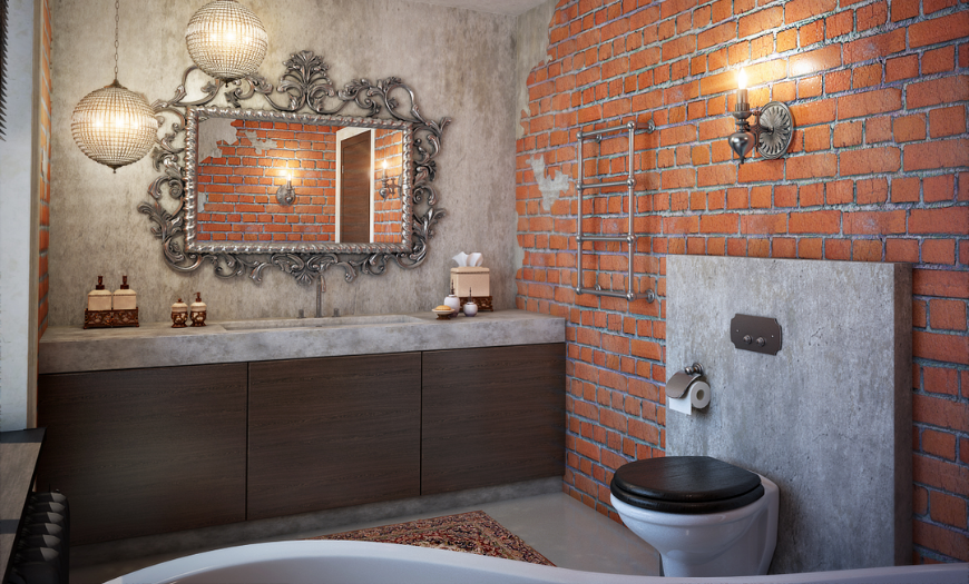 Подходит для оформления санузла, поскольку в нем сочетаются простота, практичность и эстетика. Открытые коммуникации, матовое покрытие стен и пола, кирпичные вставки и панели из дерева, природные оттенки и отсутствие аксессуаров – все это объединяет в себе лофт, – функциональный и одновременно уютный интерьер с белой сантехникой и приглушенным освещением.