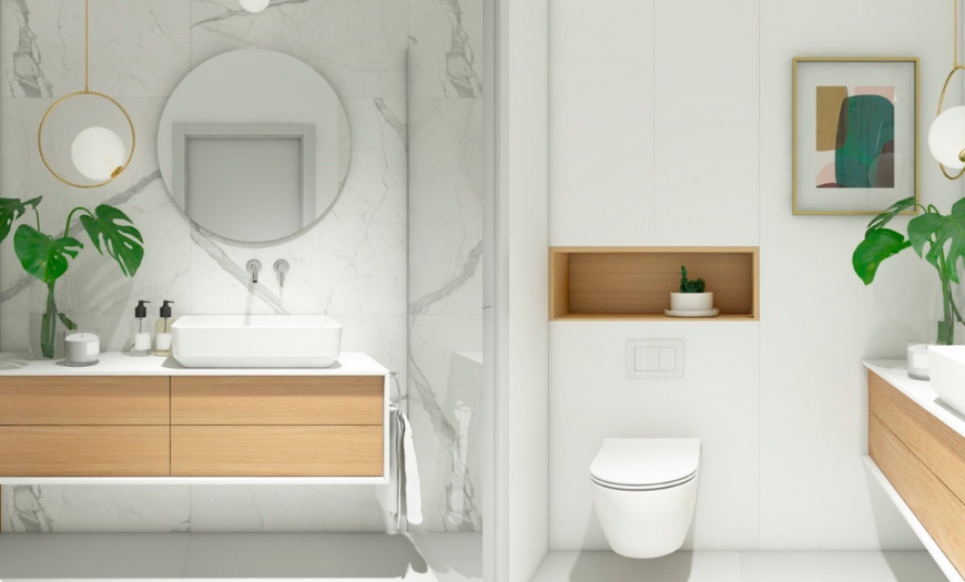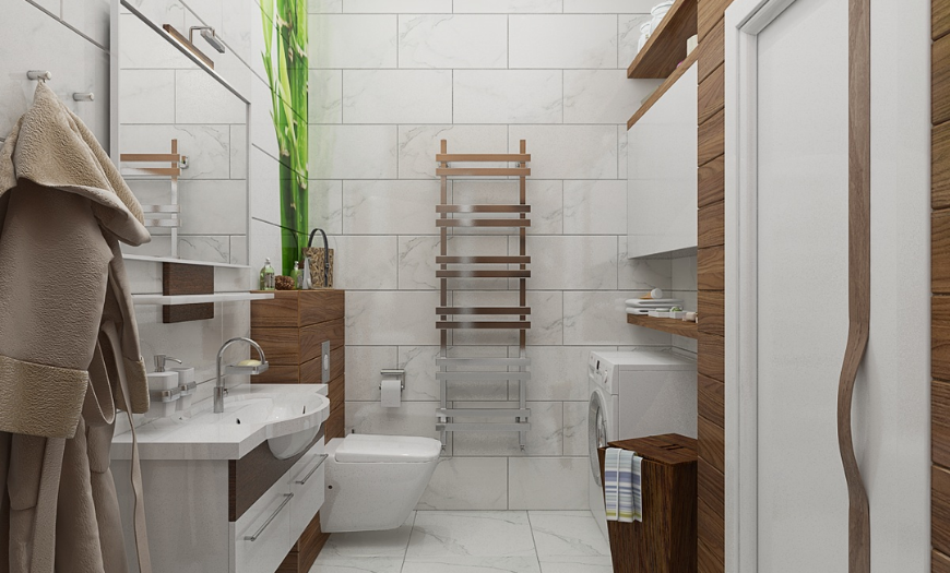Это одно из самых популярных направлений в оформлении помещений. Его часто применяют для санузлов и ванных комнат, поскольку оно соединяет в себе лаконичность, элегантность, отсутствие резких контрастов. Здесь присутствуют натуральные материалы (дерево, камень, стекло) или их имитация в сочетании с пастельными тонами и приглушенными оттенками.