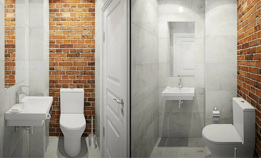 Если двери в туалет смещены к одной из стен (можно сместить их во время ремонта) раковину можно установить на боковой стене