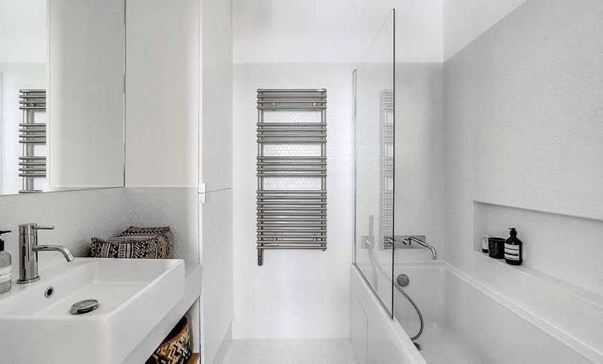 При этом для кафеля нужно предусмотреть надежную основу (например, из гипсокартона, кирпичной кладки и пеноблоков), а еще организовать вентиляцию и ревизионный люк. Для оформления конструкции лучше использовать тот же тип плитки, что и при облицовке стен.