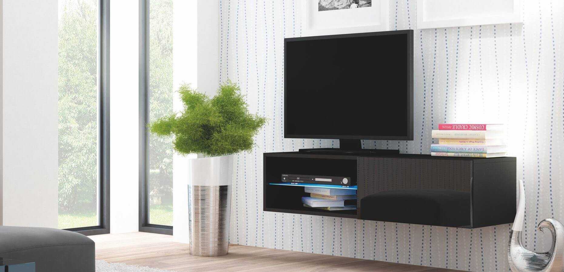 Ее особенность в том, что телевизор, для которого она предназначена, ставится не на поверхность тумбы, а закрепляется на специальном кронштейне и как бы парит в воздухе. При том что сама тумба может быть низкой, телевизор устанавливается на удобной для просмотра высоте.
