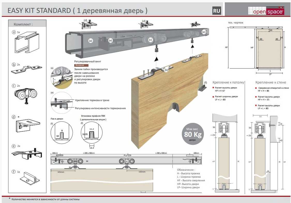 OpenSpace — Раздвижная система 2.4м для одной двери Easy Kit Standart 2400