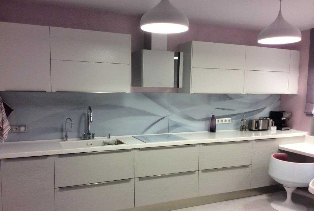 Разбить такую панель будет очень сложно, ведь даже при сильном ударе она просто покроется трещинами, но не рассыплется. Недостаток подобного варианта обустройства кухонного фартука заключается в дороговизне триплекса и его внушительной толщине. К тому же, его достаточно сложно вырезать под все имеющиеся рейлинги и розетки.