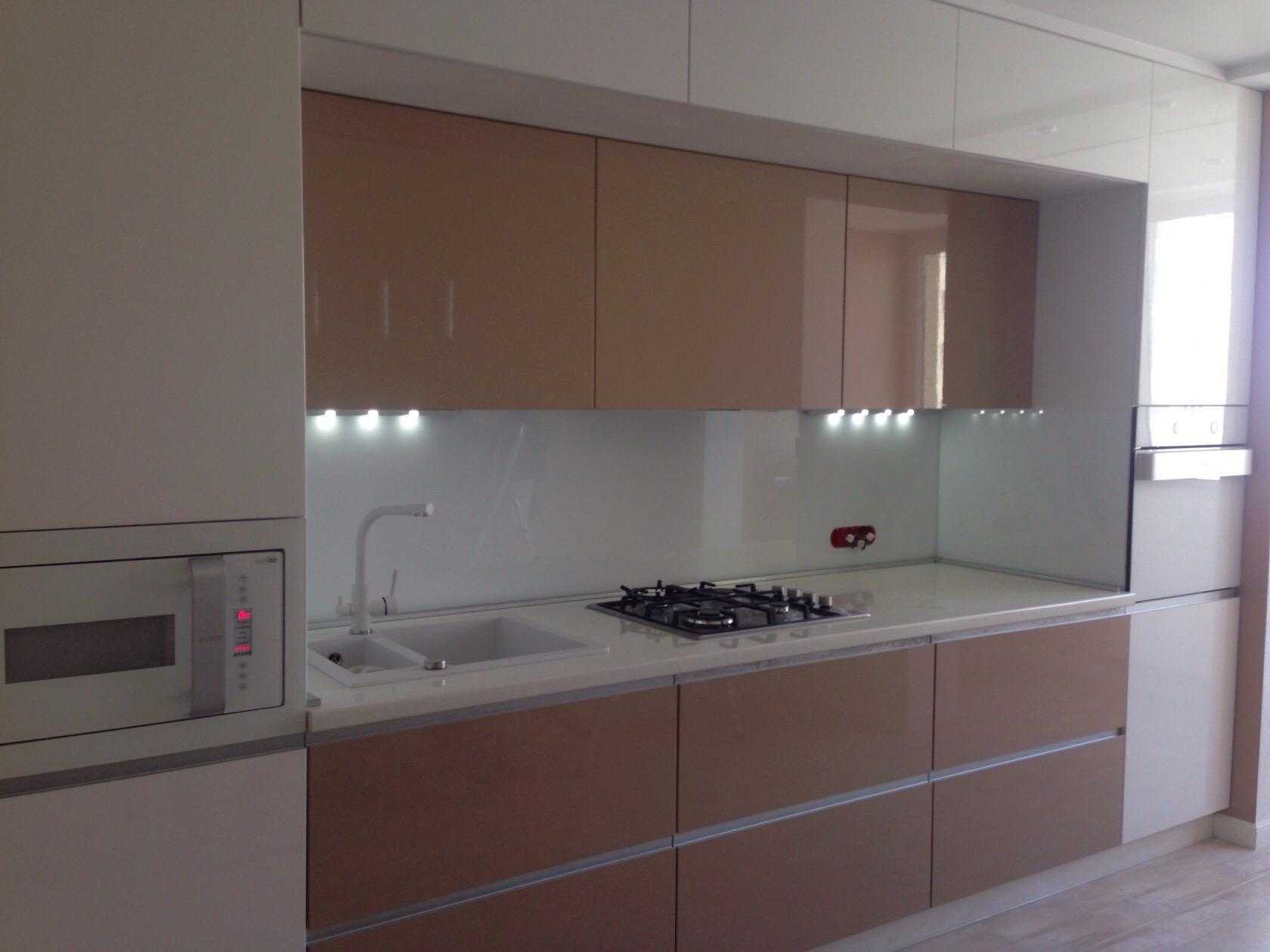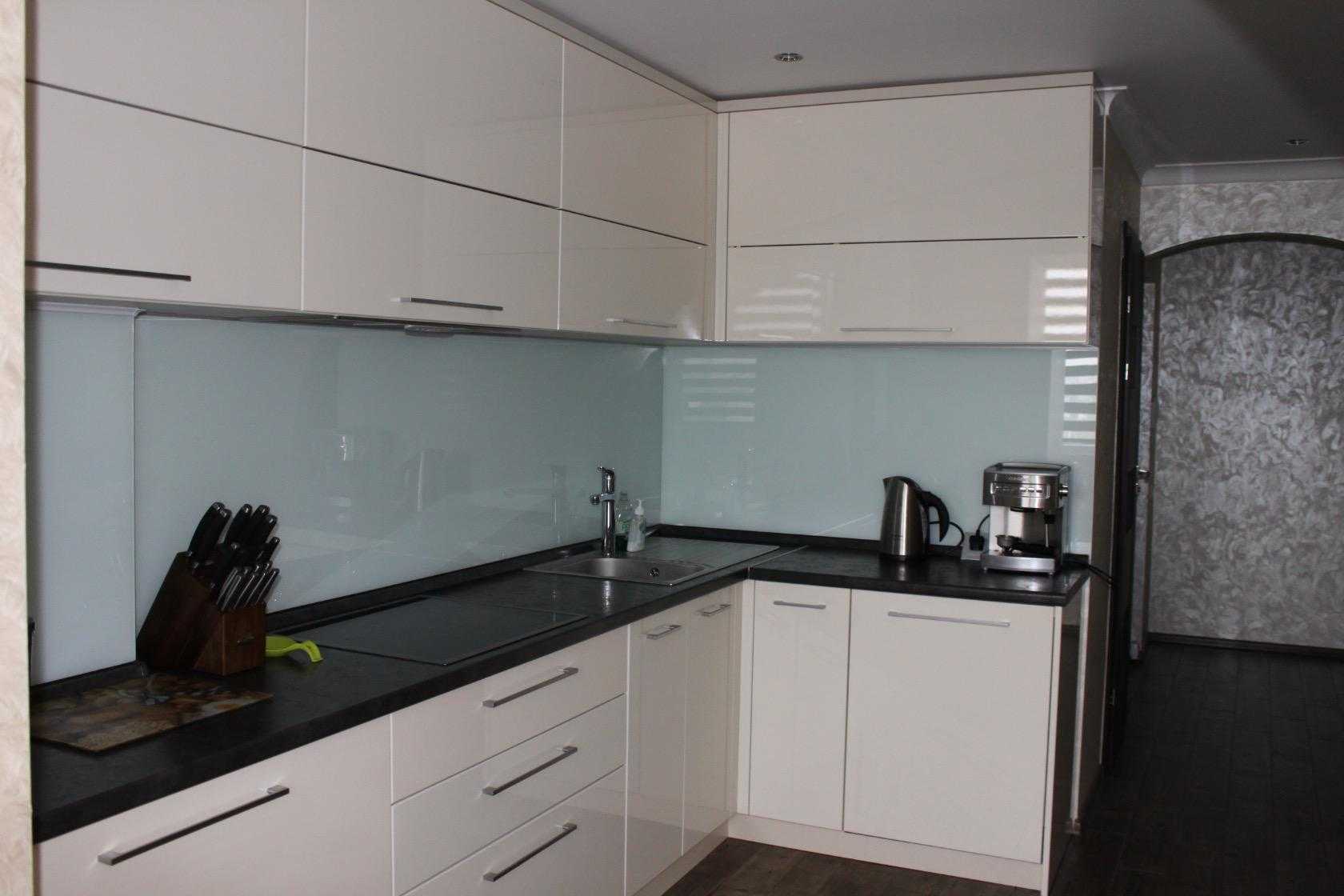- Довольно серьезным недостатком является также и то, что монтаж стеклянной панели может быть осуществлен только после окончательной сборки всей кухонной мебели, установки розеток, выключателей и прочих функциональных элементов.
