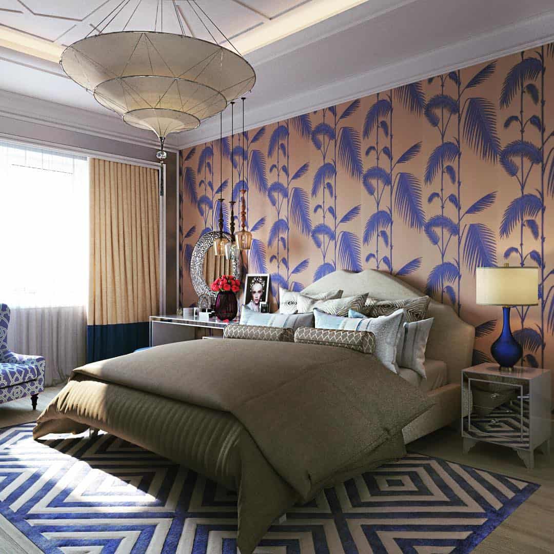 В 2021 популярны обои в спальню из стекловолокна. Они плотно крепятся к стенам, и отличаются сроком службы в 30 лет. За все время эксплуатации их можно красить около 10 раз, поэтому вы в любой момент времени сможете изменить дизайн спальни.