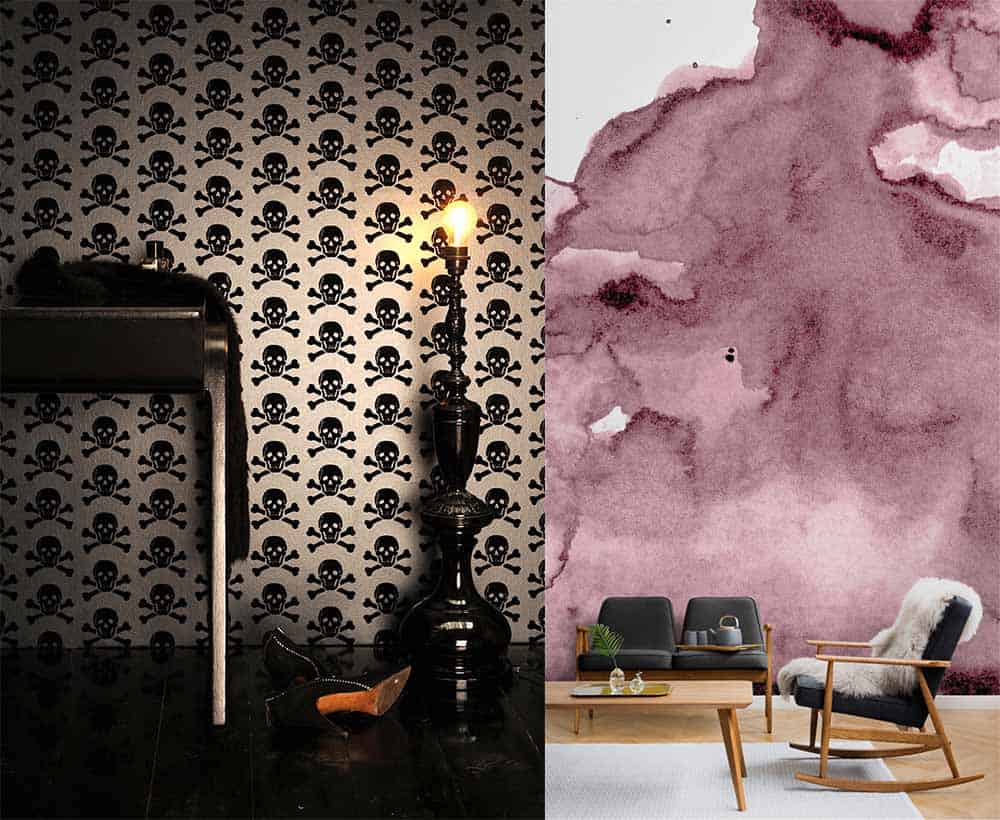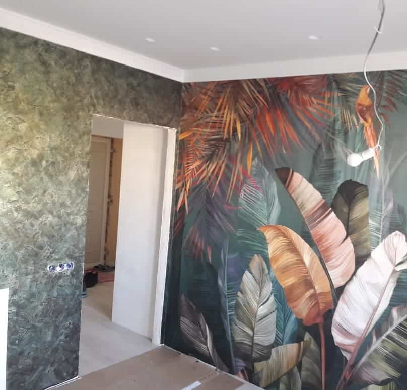 В таких ситуациях хорошо подойдут крупные 3D-принты, орнаменты, имитирующие старинные ткани, абстрактные линии, крупные растительные мотивы (трава, цветы, листья, фрукты и т. Д.). Панорамные модели использовать не следует, так как они будут иметь прямо противоположный эффект.