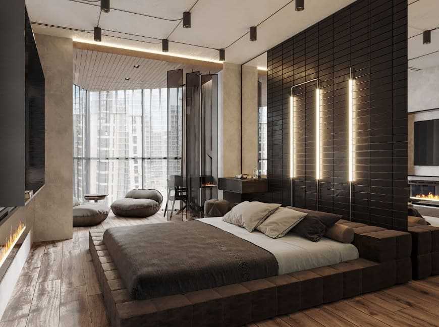 При большой загруженности в повседневной жизни, место отдыха должно максимально способствовать расслаблению и отдыху. В этом случае спальня в стиле минимализм является лучшим вариантом. Минимальное количество функциональной мебели, серо-черные цвета с ярким акцентом не загружают пространство и делают его комфортным.