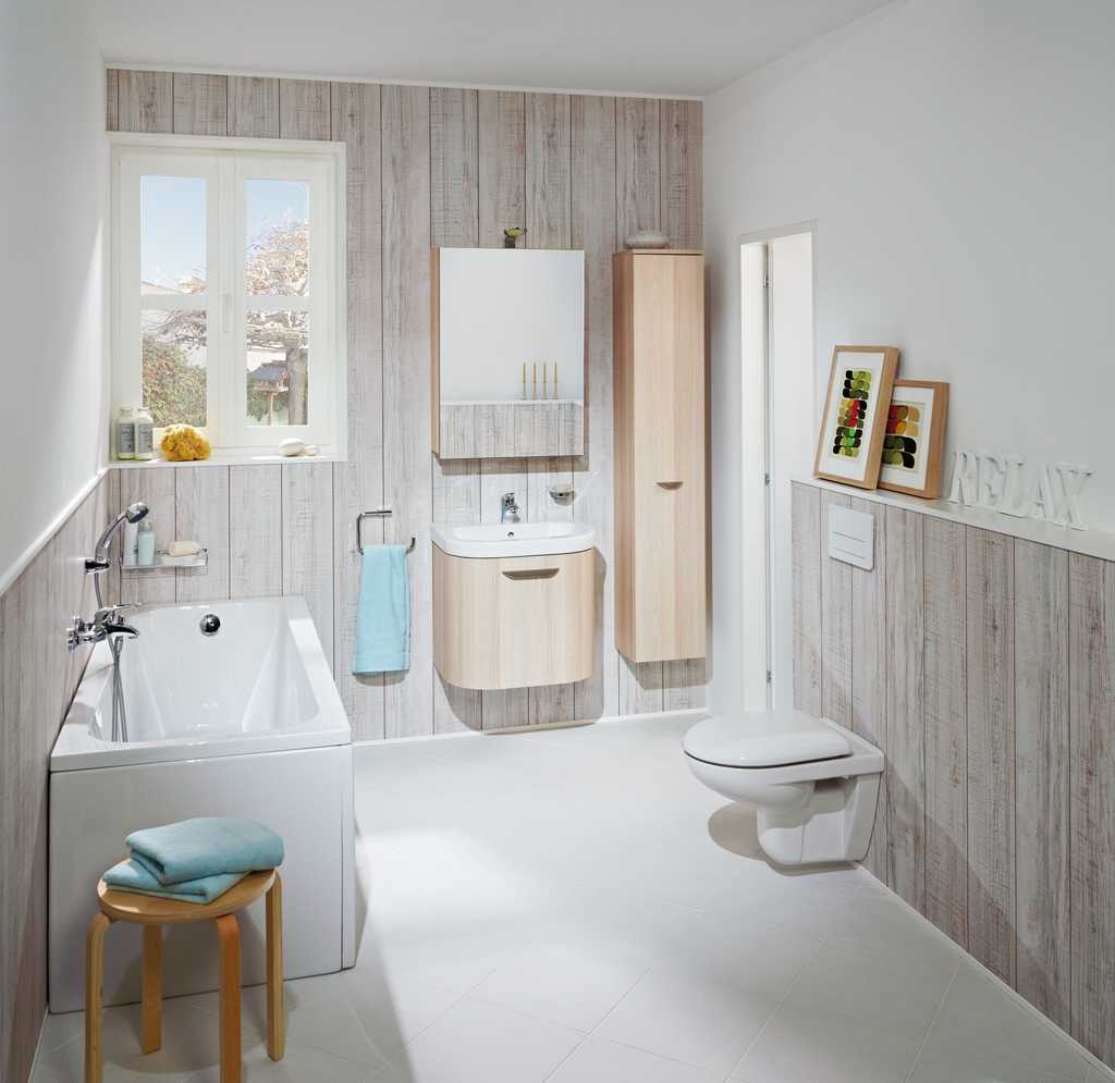 Необычная деревянная ванная с тумбой на мансардном этаже