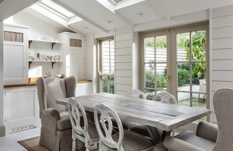 Структура натуральной древесины с видимыми трещинами, белые, бежевые, светло-серые, пудровые тона — черты мебели в стиле шебби-шик. Формы и размеры не важны — главное, чтобы предметы были декорированы в одной цветовой гамме. Этого вполне достаточно для создания гармоничной обстановки.