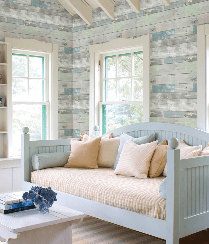 Если на даче завалялись подходящие дощечки, но их оттенок не подходит для реализации задуманного дизайна, то их всегда можно выкрасить в нужные цвета. Это могут быть пастельные, блеклые или яркие оттенки, один или сразу несколько на разных досках — все зависит от выбранного стиля. Но самое главное — краска должна сохранять фактуру материала, поэтому лучше использовать составы на водной основе, колеруя их на свой вкус.