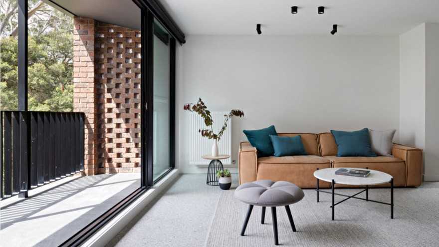 Окна во всю стену обеспечивают естественное освещение, присущее эко-минимализму