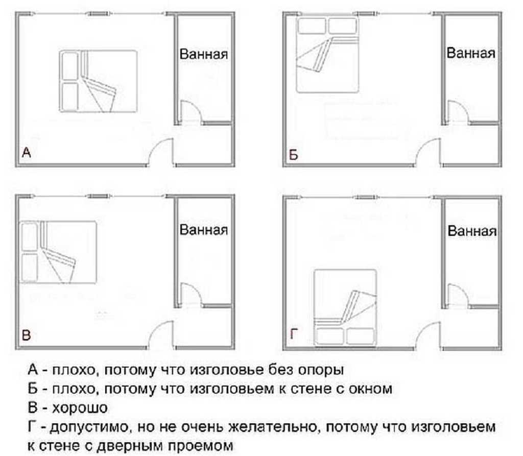 - углы другой мебели (“пронизывающие стрелы”) не должны быть направлены на спальное место;