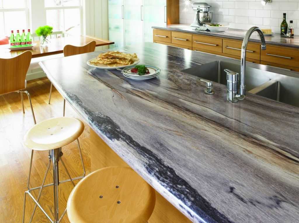 Он не боится ни воды, ни концентрированной бытовой химии, ни горячего, а продукты здесь можно нарезать без доски. Из этого камня можно получать идеально ровные, гладкие столешницы даже фигурной формы с нестандартными кромками.