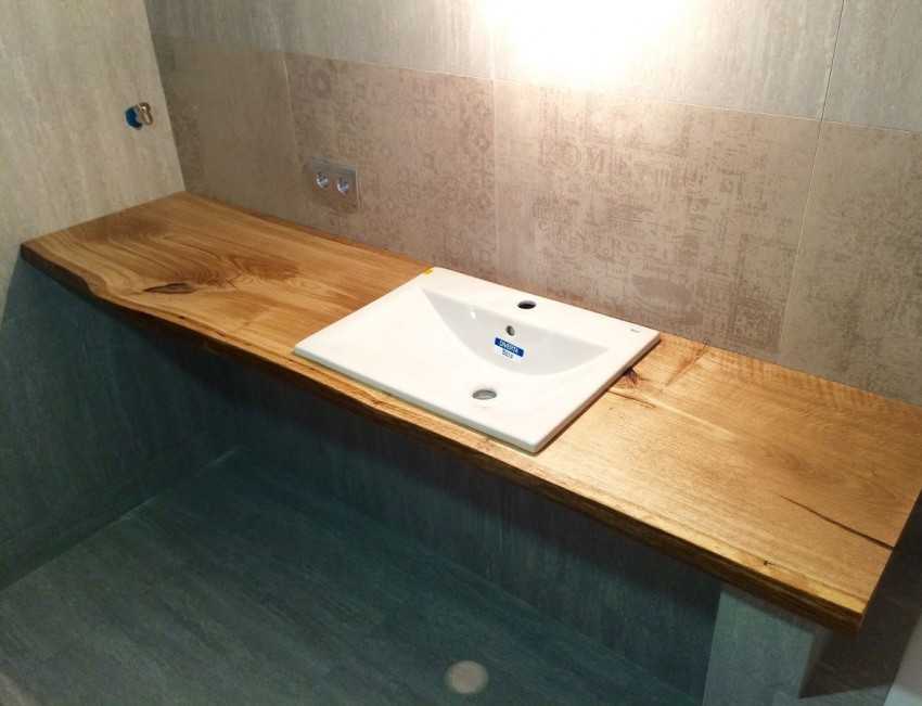 Часто люди сводятся к мнению о том, что деревянная столешница в ванной — не практичный вариант. Может они правы, но при правильной обработке и должном уходе она прослужит долгие годы.