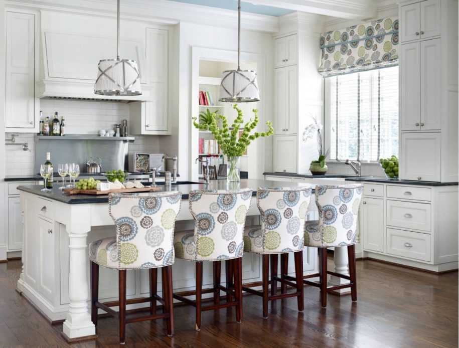 Не стоит выбирать модели с большим количеством украшений и декора, массивными ламбрекенами и т.д. Простота и натуральность – главные мотивы, которых надо придерживаться. По возможности ткани должны быть влагоотталкивающими, чтобы не впитывать жир и грязь.