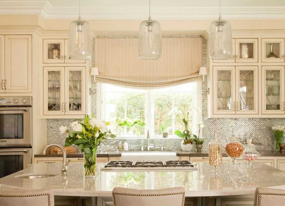 Использование рулонных штор в интерьере кухни