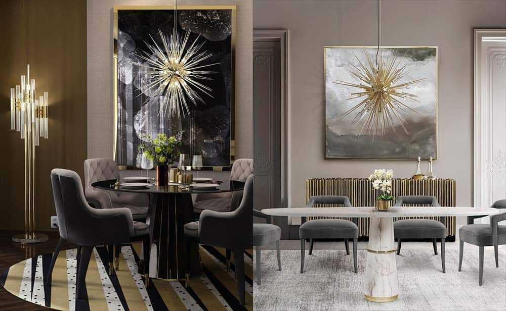 Сочетание латуни и кристаллов – самый хитовый ансамбль материалов для новейших люстр. Оно навеяно прекрасным стилем ар деко, переживающим возрождение и второй расцвет в современных интерьерах.