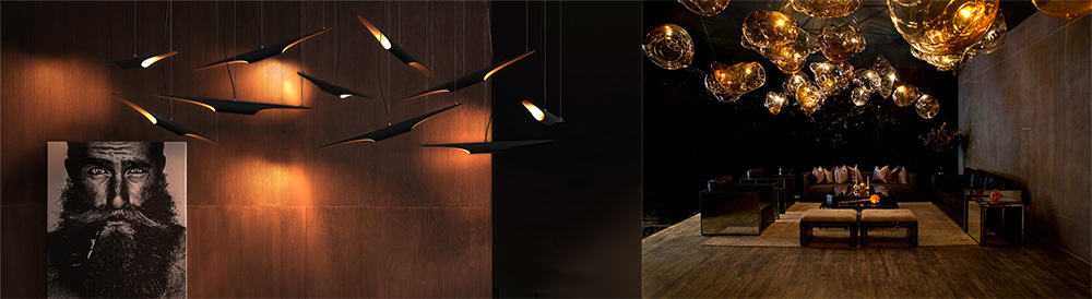 Если позволяет пространство, создавайте целые композиции из люстр. Пусть в них будет идея или сюжет, динамичность – это самый актуальный хит сезона! Например, компания DELIGHTFULL составила этот восхитительный ансамбль, напоминающий чаек, летающих в вышине.