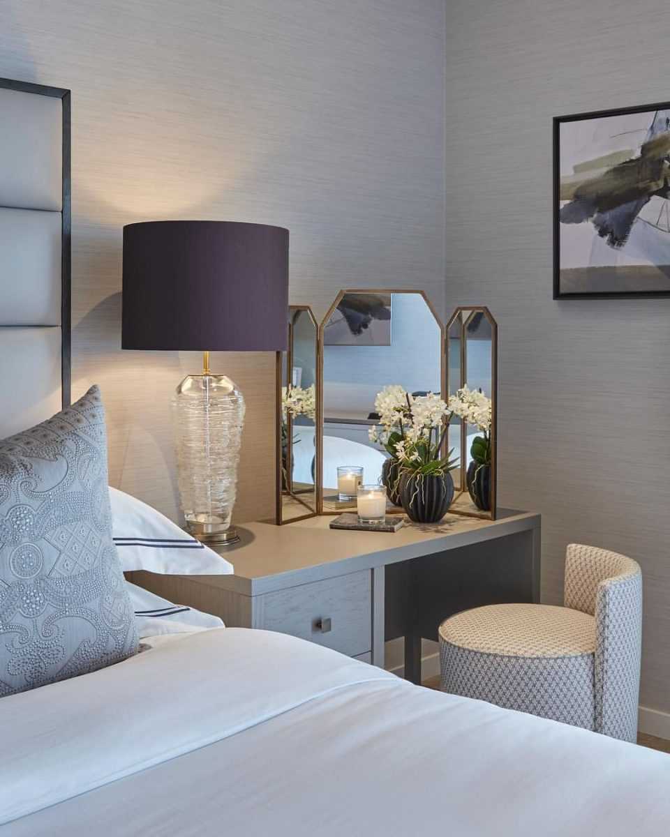 Настольный светильник стал неотъемлемым элементом для спальни. Они компактны, мобильны и функциональны. Можно приобрести прибор с направленным или рассеянным светом. Нужно заранее подумать о его предназначении. Всё-таки это освещение локального типа и оно не сможет осветить качественно каждый уголок комнаты. Такая лампа ставится в той зоне, где она больше всего востребована.