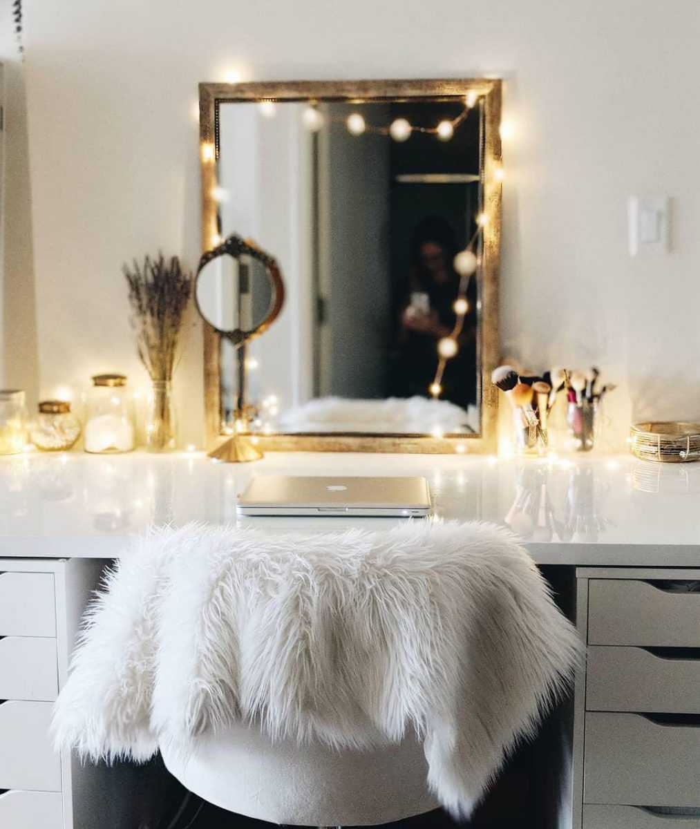 Практически в каждом спальном помещении есть свой женский уголок, где расположен туалетный столик и зеркало. Эта зона требует яркой подсветки, особенно, если хозяйка спальни трепетно относится к своему внешнему виду. В таком случае можно использовать осветительный прибор, выполненный в виде изящного цветка. Обычно его вешают над зеркалом.