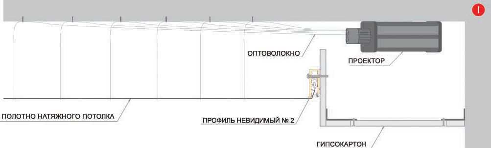 Схема натяжного потолка «Звёздное небо» с проколом полотна
