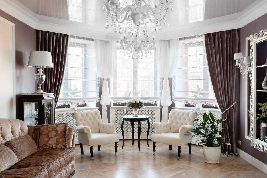 Все более актуальным вновь становится классический интерьер гостиной. Светлые оттенки, которые используются для оформления стен и пола делают помещение более теплым и уютным. Такая атмосфера всегда располагает к хорошему времяпрепровождению. Безусловно, играет роль и количество осветительных приборов. Довольно большие люстры, а также торшеры и светильники – все это уместно в классическом стиле интерьера гостиной. Процесс выбора мебели в данном случае будет не сложным, ведь она должна быть роскошной. К примеру, диван может иметь бархатную обивку. Это сделает его главным акцентом гостиной. Высокое качество должно быть буквально во всем, даже в декоративных деталях. Среди них текстильные элементы, различные вазы, шкатулки, подсвечники и многое другое.