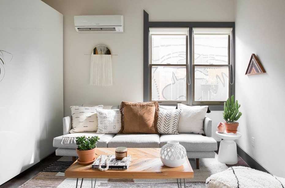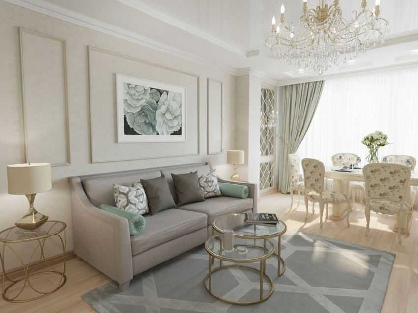 - ориентироваться на размеры гостиной. Небольшая площадь обязывает выбирать нейтральные, светлые и ненавязчивые оттенки;
