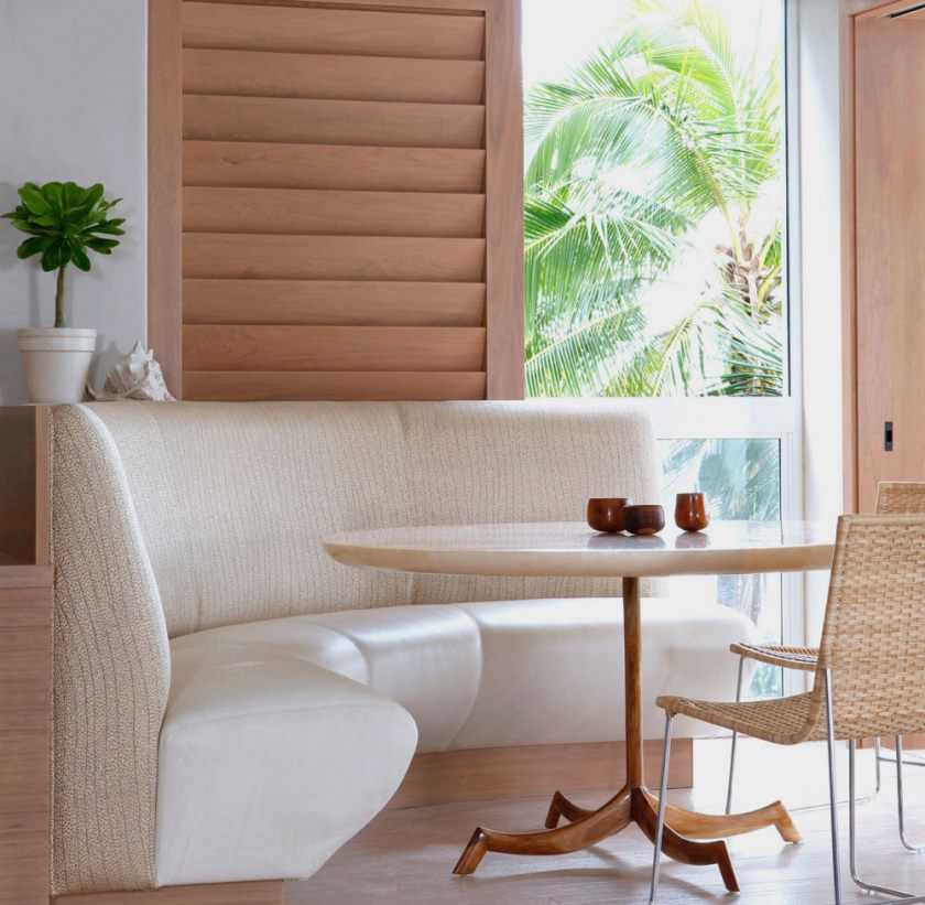 Банкетки и оттоманки – это самый красивый и чаще всего дорогой вид дивана. Дизайн кухни с диваном такого типа будет стильным и не «перегруженным».