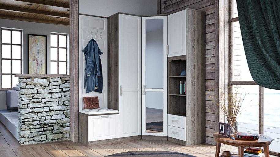 Комбинированный угловой шкаф в стиле кантри для прихожей