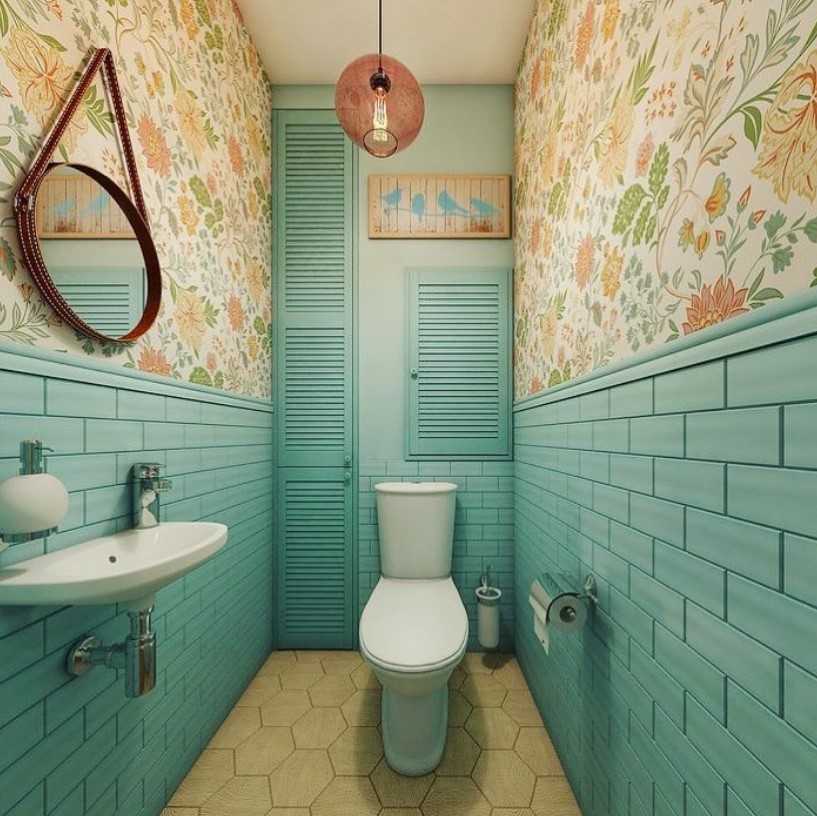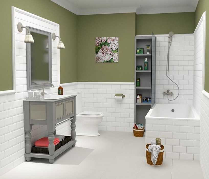 Например, зеленый в сочетании с лимонным или нежно-розовым цветом. Такой союз сделает комнату яркой и свежей. Последним штрихом в этой комнате станет кран и душ, стилизованные под старину