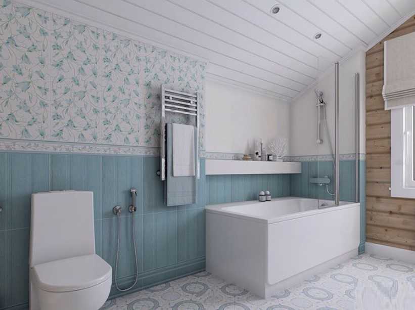 Можно оформить помещение и в другой цветовой палитре. Например, в бело-голубом цвете. Такая ванная комната будет напоминать о море. Можно дополнить образ расписной плиткой с растительным орнаментом, так вы приблизите его к окружающей природе.