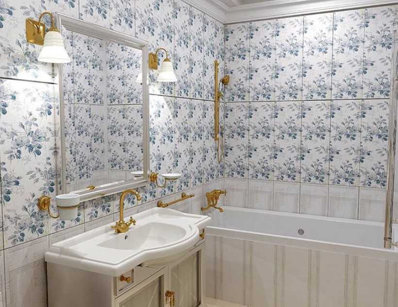 Учитывая значительную влажность, стены облицовывают керамической плиткой с тематическими узорами.