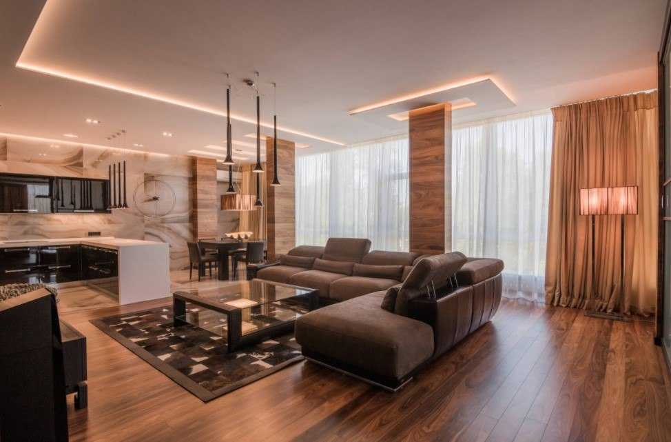 - Контемпорари – аналогично скандинавскому, предпочтение отдаётся светлым, бежевым оттенкам. Венге с его шоколадным тоном может присутствовать только в мебели или элементах декора, да и то, в небольших количествах.