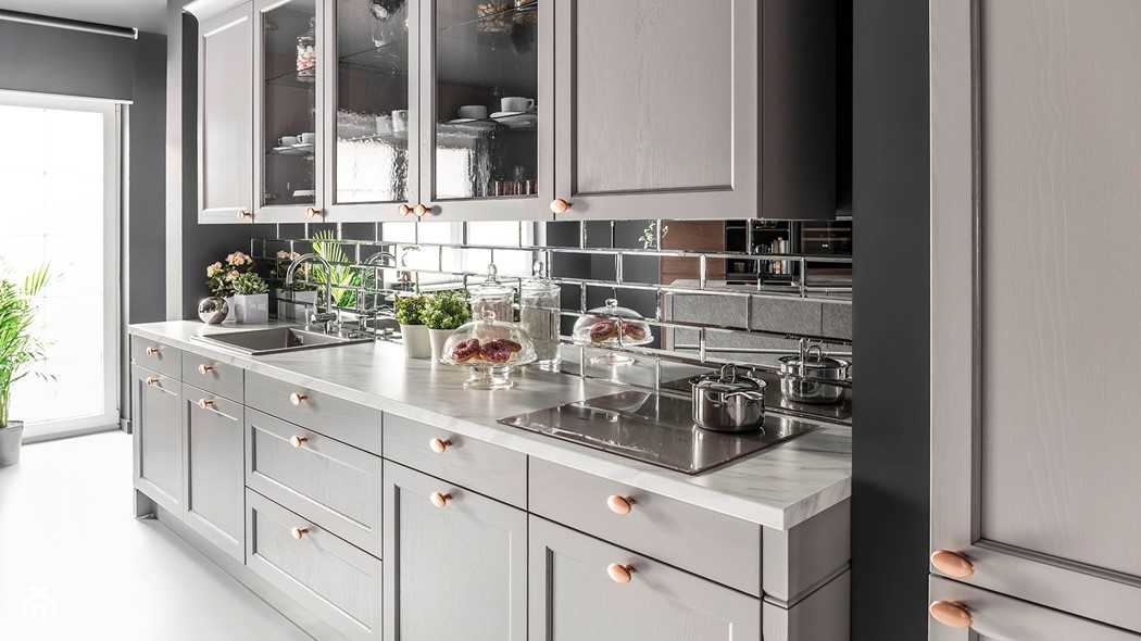 Выбор места для зеркал может быть оригинальным и самым неожиданным. Зеркальный цоколь в основании шкафчиков – нетривиальное решение для обычной кухни.