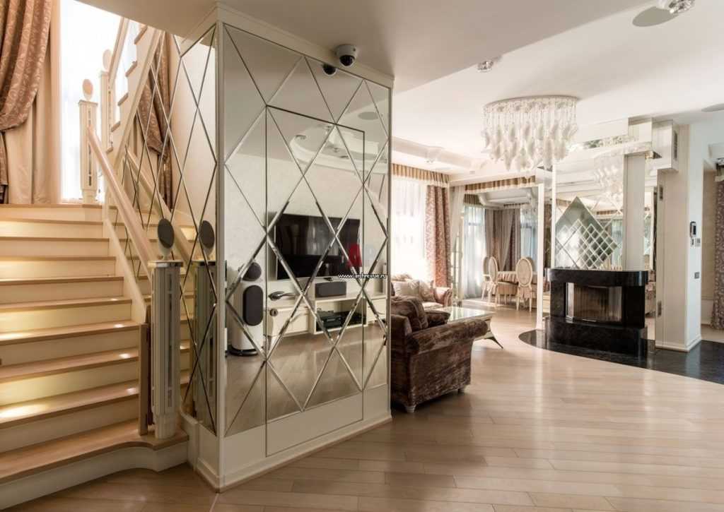 Если же в большом пространстве одну из стен сделать полностью зеркальной, то помещение может казаться пустым и холодным