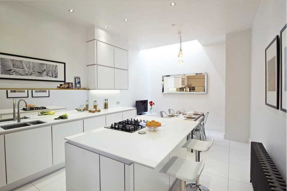 Идеальный вариант для маленькой кухни, позволяющий расширить границы помещения и навсегда избавиться от эффекта замкнутого пространства.